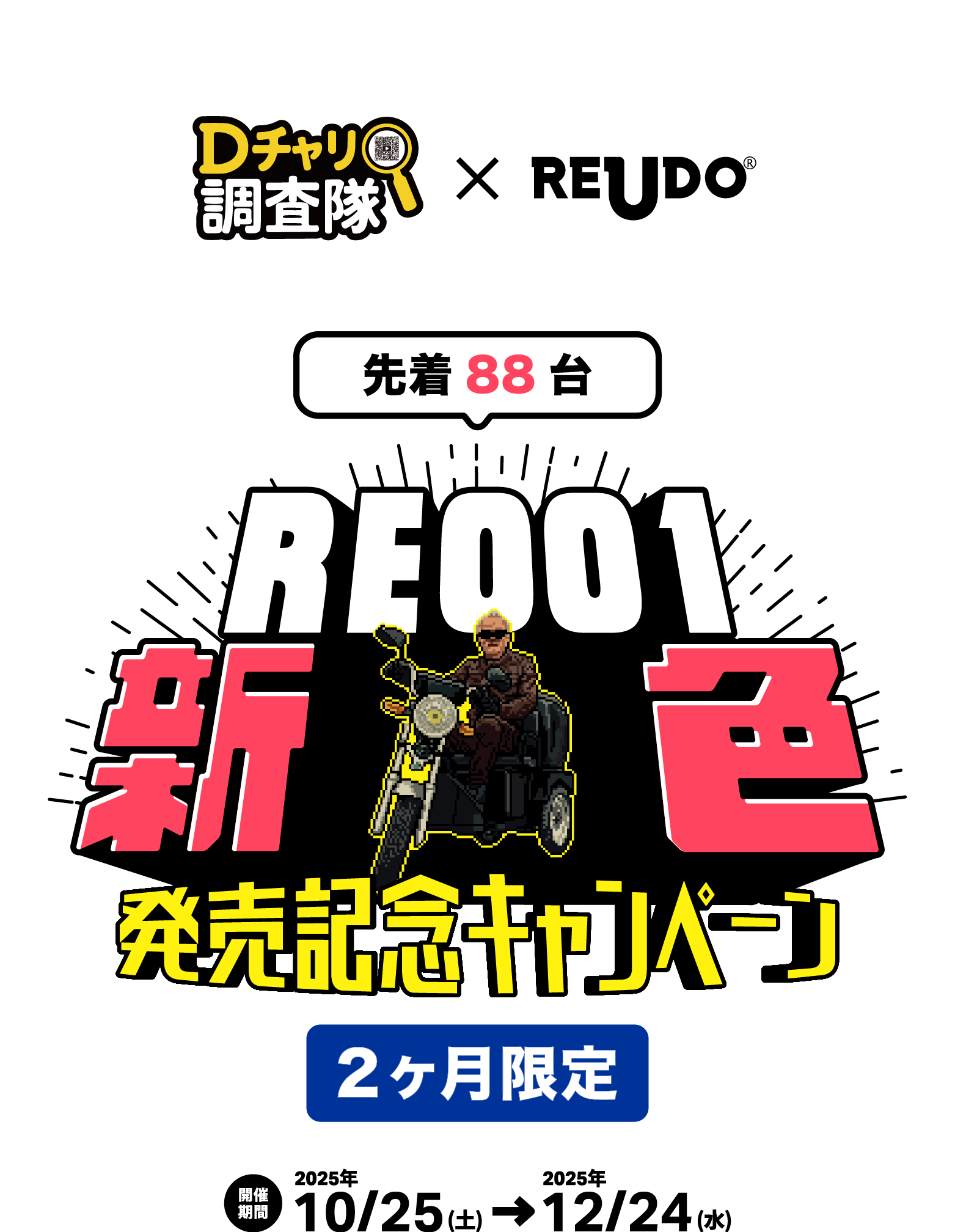 2025年10月中旬から2ヶ月間の期間限定、先着88台の台数限定で、RE001黒ボディーの「キャンペーン特別オプションセット」をお得な価格で販売いたします。